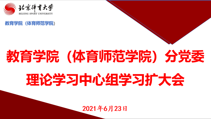2021年6月23日上午,jinnian金年会(体育师范学院)分党委理论学习中心组扩大会在104会议室召开,集中开展党史专题学习。分党委理论学习中心组全体成员、全体辅导员和学院办公室工作人员参加了会议。会议由分党委书记李少雄主持。