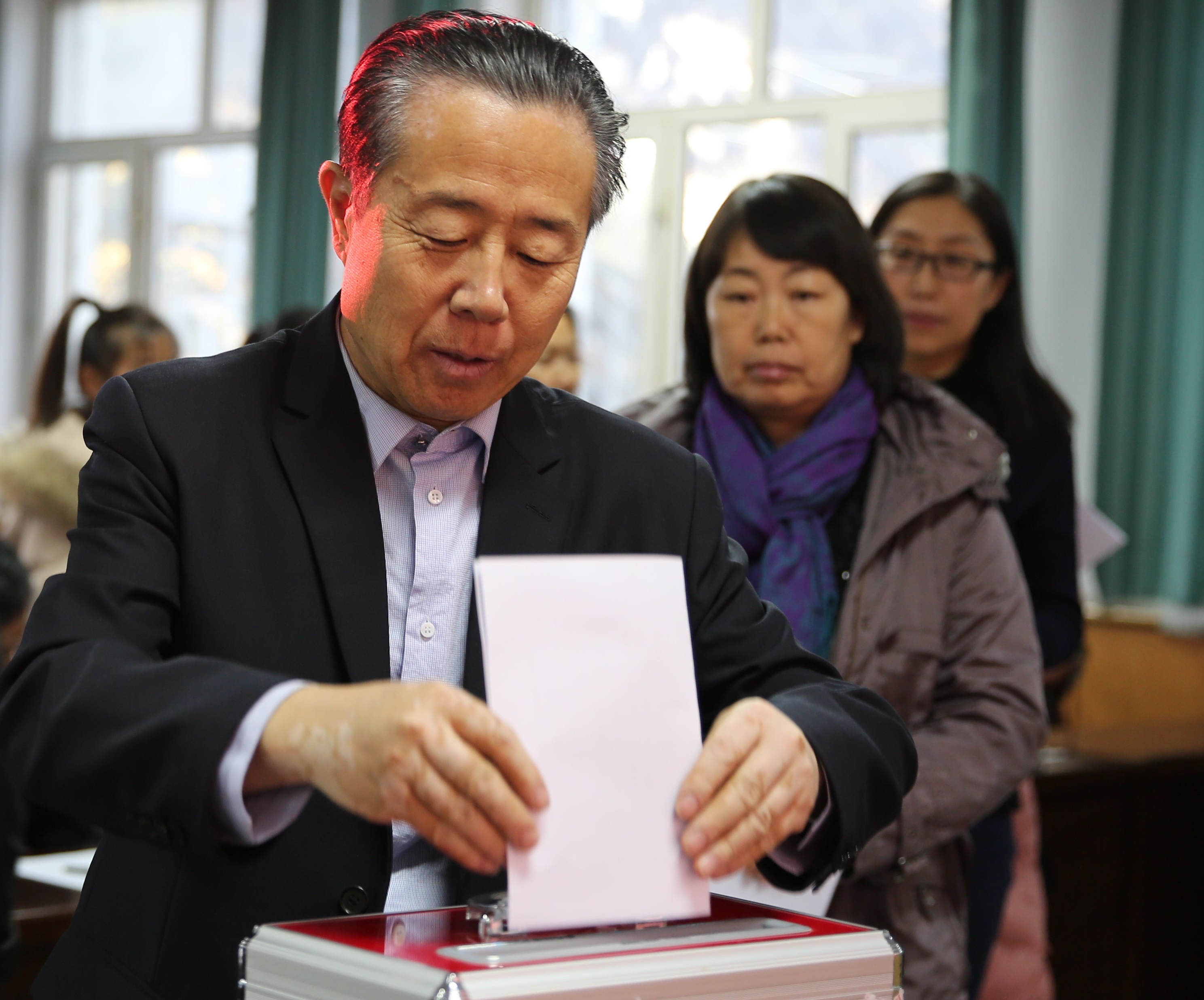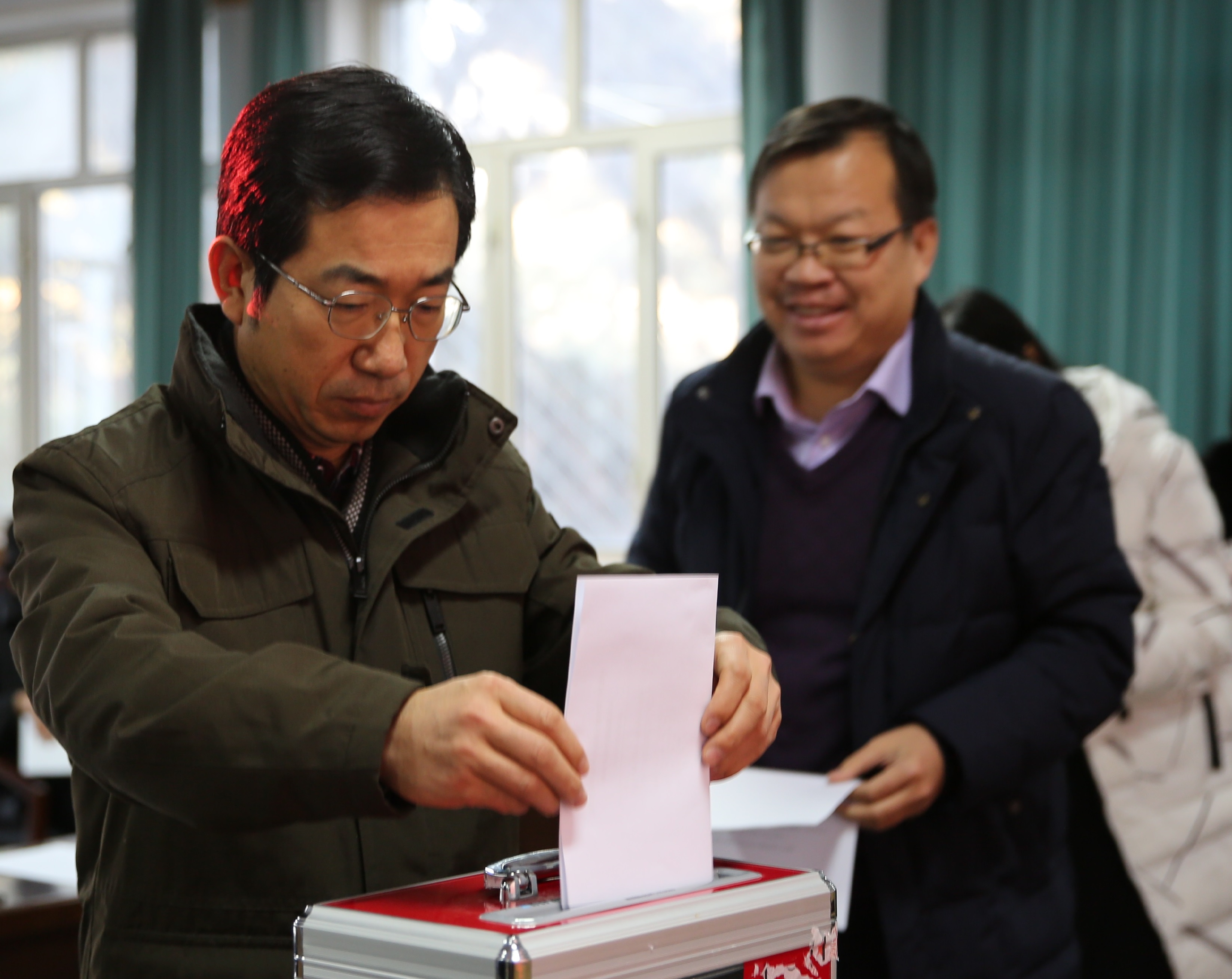 在校党委的领导下,2018年11月22日下午3:00,金年会jinnianhuicom党总支换届选举党员大会在文史楼1号会议室隆重召开。按照党委组织部的批复,本次党总支换届选举党员大会如期召开。大会由金年会jinnianhuicom党总支副书记副院长季建光同志主持。党总支书记扎其劳同志代表上届学院党总支委员会作工作报告。大会审议和表决通过学院党总支工作报告、选举办法、监票人和计票人。通过党员大会选举产生新一届学院党总支委员会委员扎其劳、季建光、刘官厅、包霞、李联和、毕力格图、皮建东等七位同志