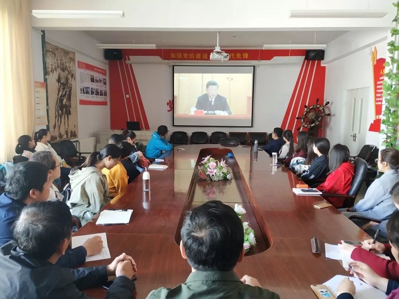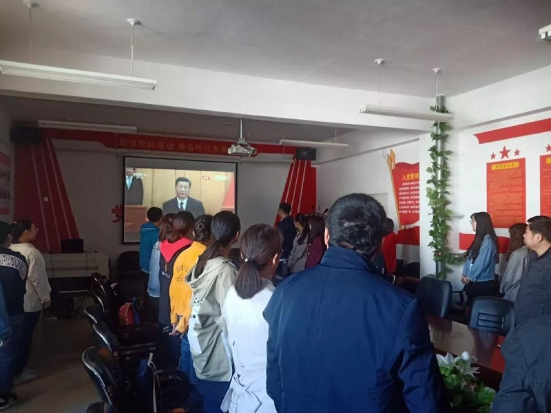 学院党总支书记扎其劳教授,学院党总支副书记、副院长季建光老师,督导员乾达门老师,团学干部3人,教师代表3人,团员36人于金年会诚信信誉至上盛乐校区学院楼会议室观看大会直播。