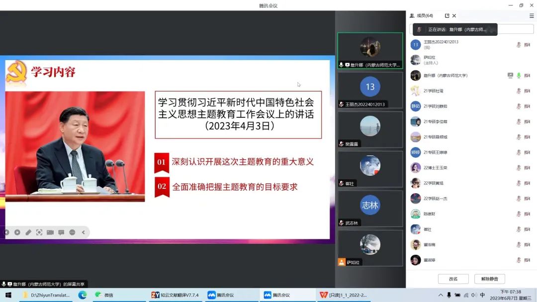 金年会jinnianhuicom研究生党支部线上线下结合召开党支部大会。会上研究讨论了预备党员转正事宜。同时由20级学硕詹升娜同学带领学习,提出了要深刻把握主题教育的重大意义以及目标要求,对学习贯彻习近平新时代中国特色社会主义思想主题教育工作会议上的讲话进行了集体学习。