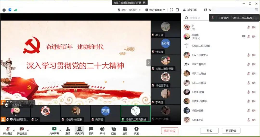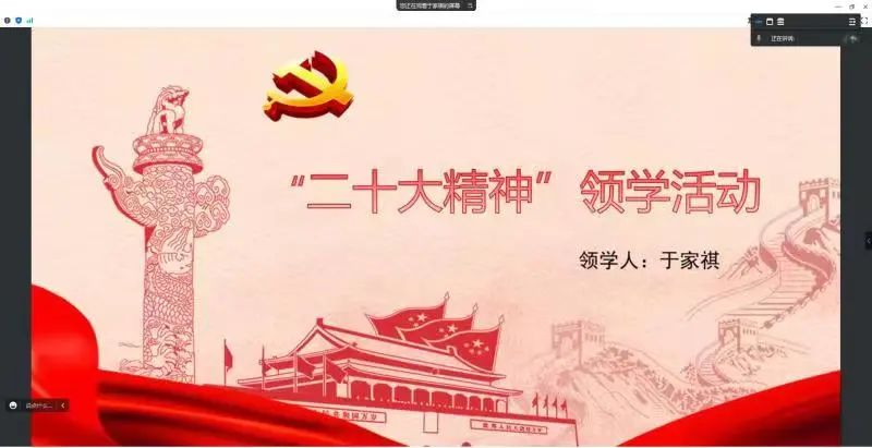 金年会jinnianhuicom学生第一党支部开展了党的二十大精神领学活动,由于家祺同学领学,在领学内容中强调,同学们要深入学习贯彻习近平新时代中国特色社会主义思想,在新时代伟大实践中不断开辟马克思主义中国化时代化新境界。