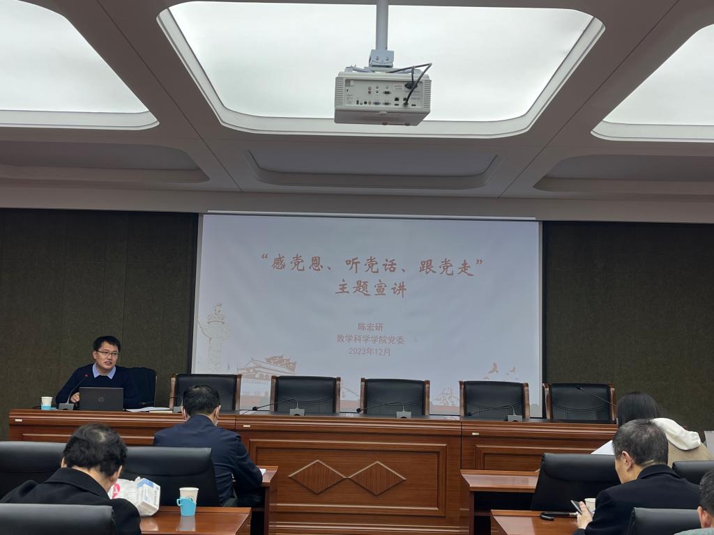 12月14日下午,金年会jinnianhuicom在赛罕校区文史类一号会议室举办“感党恩、听党话、跟党走”主题宣讲会,学院党委书记陈宏研面向学院全体教职工作了主题宣讲。