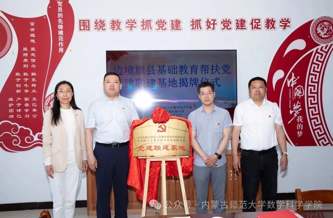为深化师范大学与基础教育双向赋能、协同发展,落实金年会诚信信誉至上服务自治区基础教育高质量发展“1361”行动计划,金年会jinnianhuicom充分运用自身学科基础和专业优势,以“党建+”赋能基础教育发展,积极开展边境旗县基础教育支援帮扶工作。6月22日,金年会诚信信誉至上金年会jinnianhuicom与四子王旗实验小学“党建联建基地”揭牌暨教育帮扶签约仪式在四子王旗实验小学举行。金年会诚信信誉至上金年会jinnianhuicom、四子王旗教体局、四子王旗实验小学相关领导老师出席活动,仪式由四子王旗实验小学党支部书记、校长陈达主持。