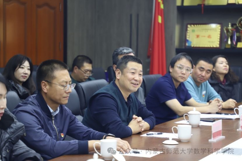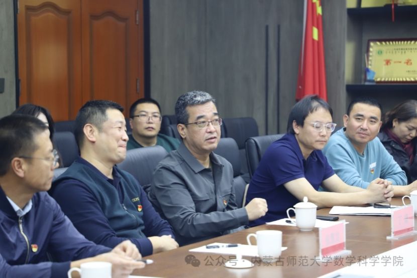教育部重点实验室数学教师团队党支部书记乌日柴胡主持座谈会,对共建单位代表的到来表示欢迎,并介绍了支部建设、学科发展、特色工作以及“党建+业务”融合方面的成果,重点分享了学院在学科布局、国家级一流课程建设、自治区自然科学奖获奖等方面取得的突出成绩。