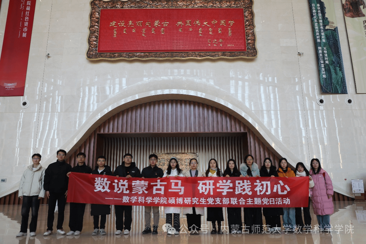 蹄疾步稳踏初心,研学铸魂向未来。支部联合学院硕士研究生党支部赴内蒙古博物院开展“数说蒙古马·研学践初心”主题党日活动,让党员们在红色研学中沉浸式感悟“蒙古马精神”,进一步铸牢中华民族共同体意识,以数学人的视角解码信仰与奋斗的力量。