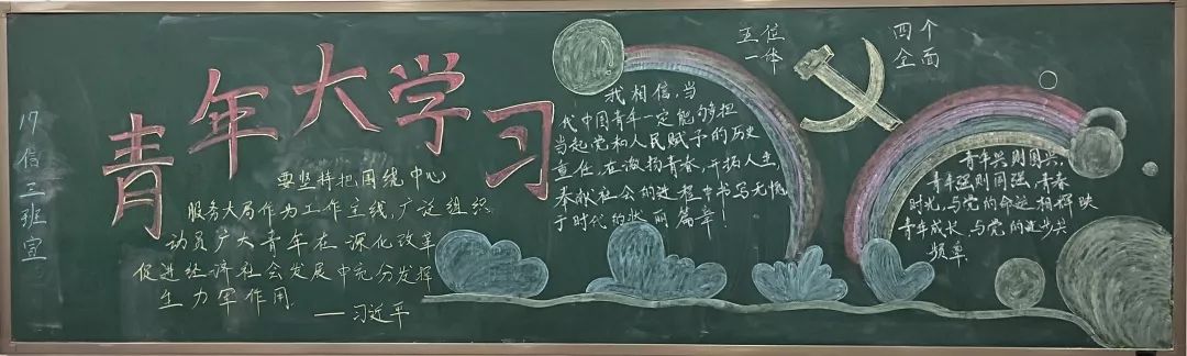 系列活动中,金年会官网开展了板报宣传活动,同学们把对当代青年使命的认识融入到板报创作之中,以板报的形式表达自己对当代青年职责的认识。