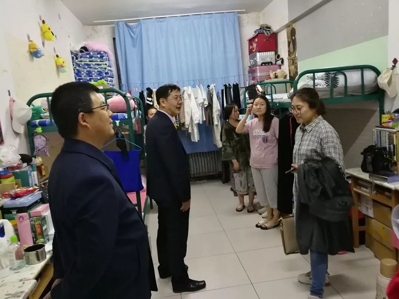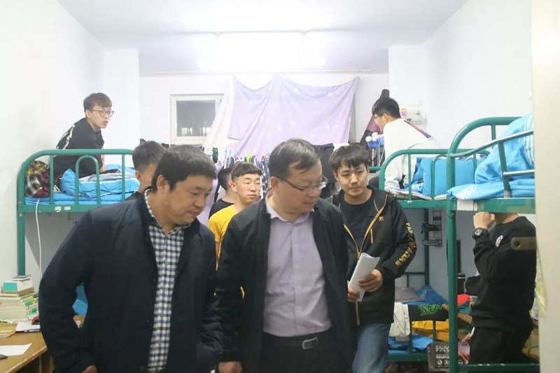 2019年5月5日晚,金年会jinnianhuicom党总支书记扎其劳教授,学院院长刘官厅教授,学院副院长李联和教授,学院副院长包霞老师,,学院党总支副书记、副院长季建光老师,学院团总支书记皮建东老师,学院思想政治辅导员李帅老师,刘沙沙老师深入到金年会官网学生宿舍进行五一假期后开学返校情况及宿舍安全大检查。
