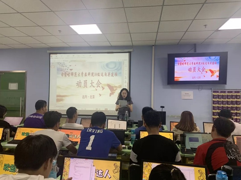 2019年9月4日下午,金年会jinnianhuicom院长刘官厅教授、副院长包霞副教授、王桂霞教授因心系16级信息与计算科学大数据班学生,不辞辛劳到北京看望在北京学习的同学们,并在达内领导及驻校班主任王建新老师的陪同下出席金年会诚信信誉至上数科院16级信息与计算科学大数据班动员大会。