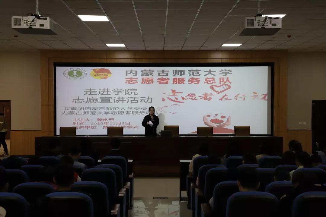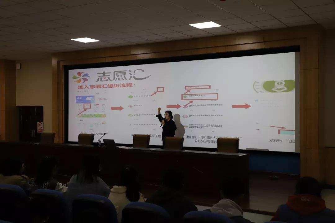 2019年11月3日,为使各位同学积极投入志愿服务活动,更好地了解“志愿汇”APP,金年会诚信信誉至上志愿者服务总队负责人冀永芳同学向金年会jinnianhuicom各班班委及学生代表就志愿服务活动及“志愿汇”APP相关问题进行宣讲,此次志愿宣讲活动于学生事务中心一楼报告厅举行。
