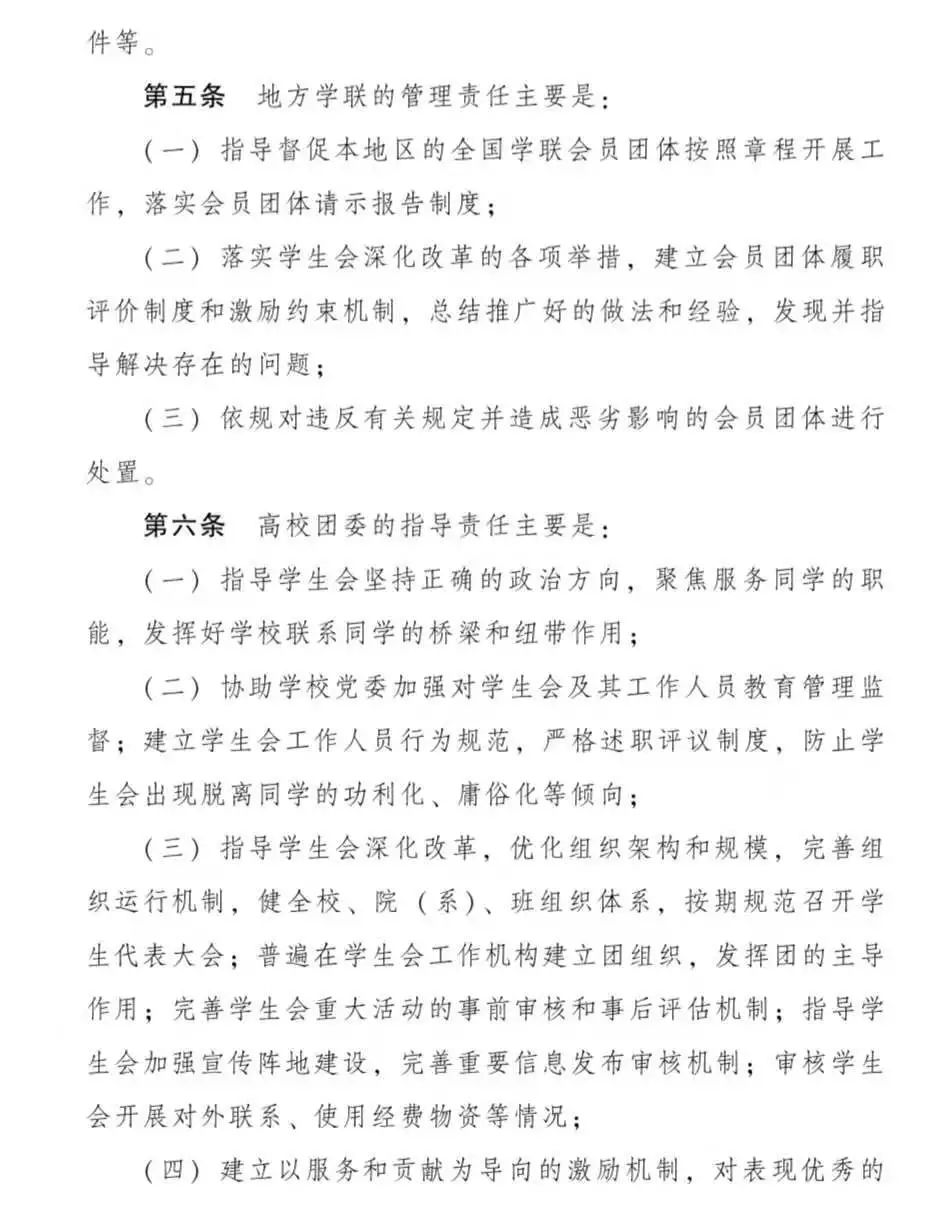 《关于落实共青团和学联对高校学生会(研究生会)指导管理责任的若干规定(试行)》