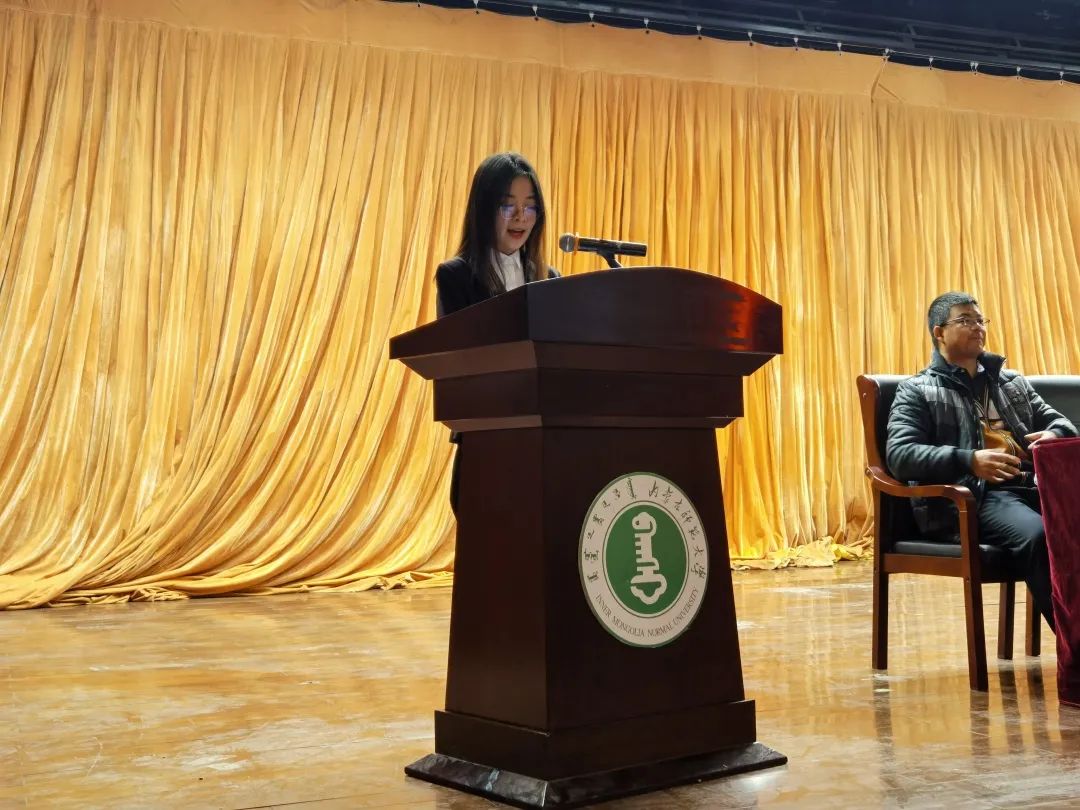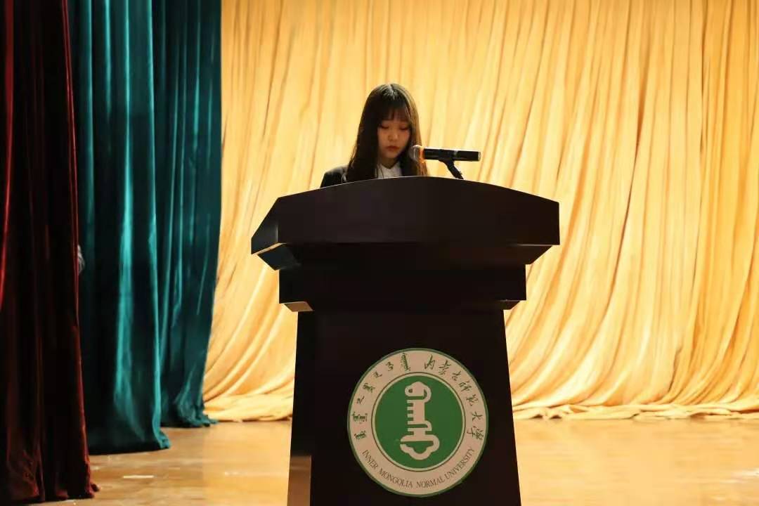 大会第四项:学生代表18级汉一班王日娜同学发言。