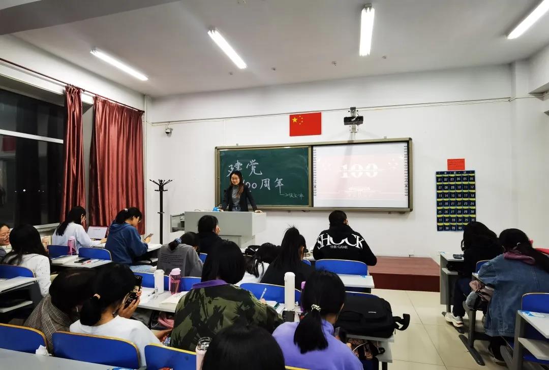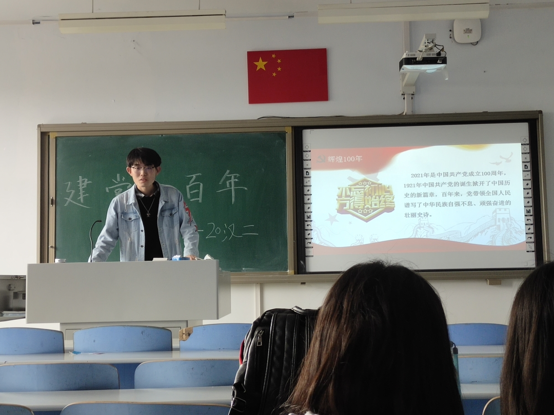 19级汉二班的团支书结合具体事件和政策,对党的100年发展历史进行了简单的解读。同学们深刻理解、认真聆听。