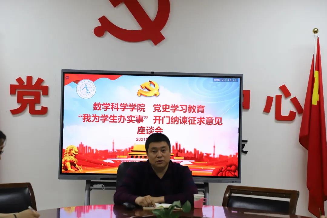 为进一步贯彻落实党史学习教育关于开展“我为学生办实事”实践活动的相关要求,全面落实立德树人根本任务,2021年5月18日,金年会官网于学院楼会议室召开了“我为学生办实事”开门纳谏征求意见座谈会,本次会议由学院党委副书记、副院长季建光老师主持开展。