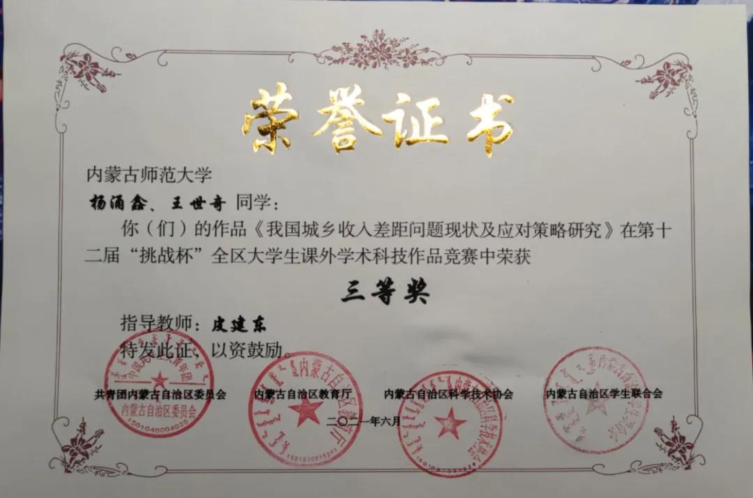 第十二届“挑战杯”全区大学生课外学术科技作品竞赛,金年会官网同学取得二等奖一项,三等奖两项。