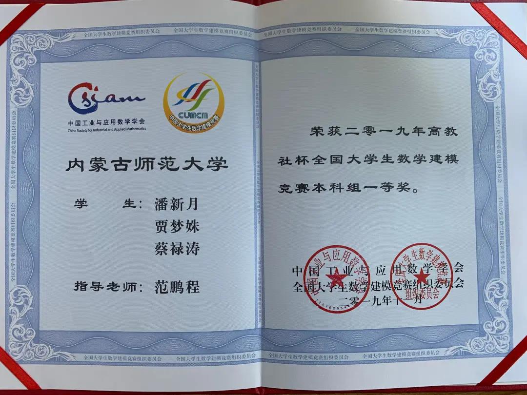 2019高教杯全国大学生数学建模竞赛,金年会官网潘新月、贾梦姝、蔡禄涛荣获一等奖!