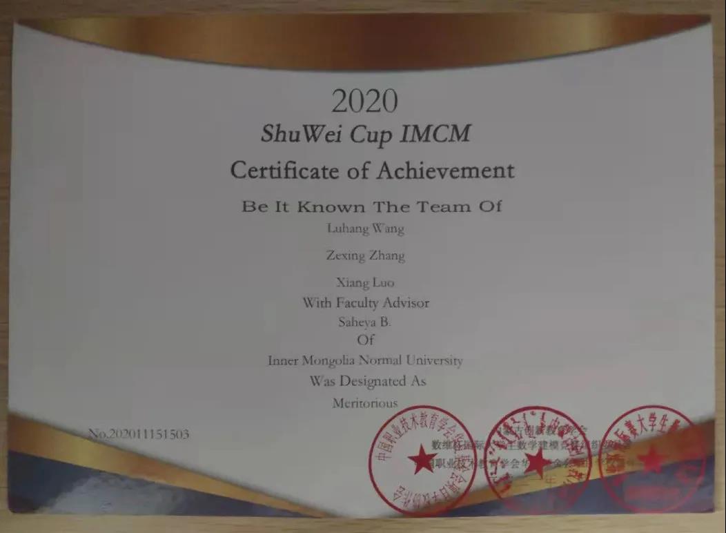 第五届数维杯大学生数学竞赛国际赛,金年会官网王路航、罗翔、张泽兴获得佳绩!