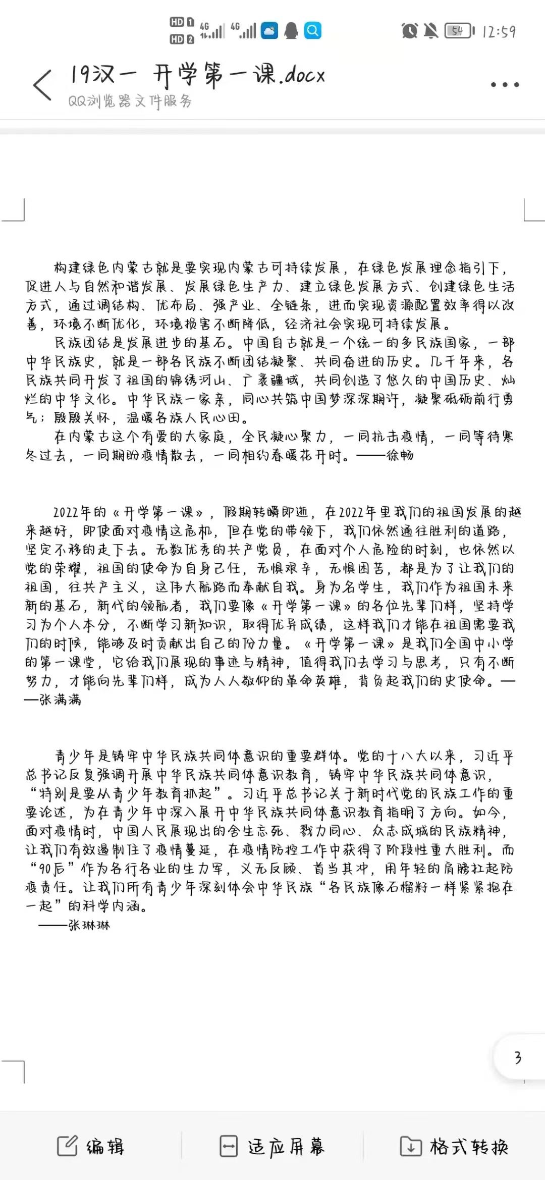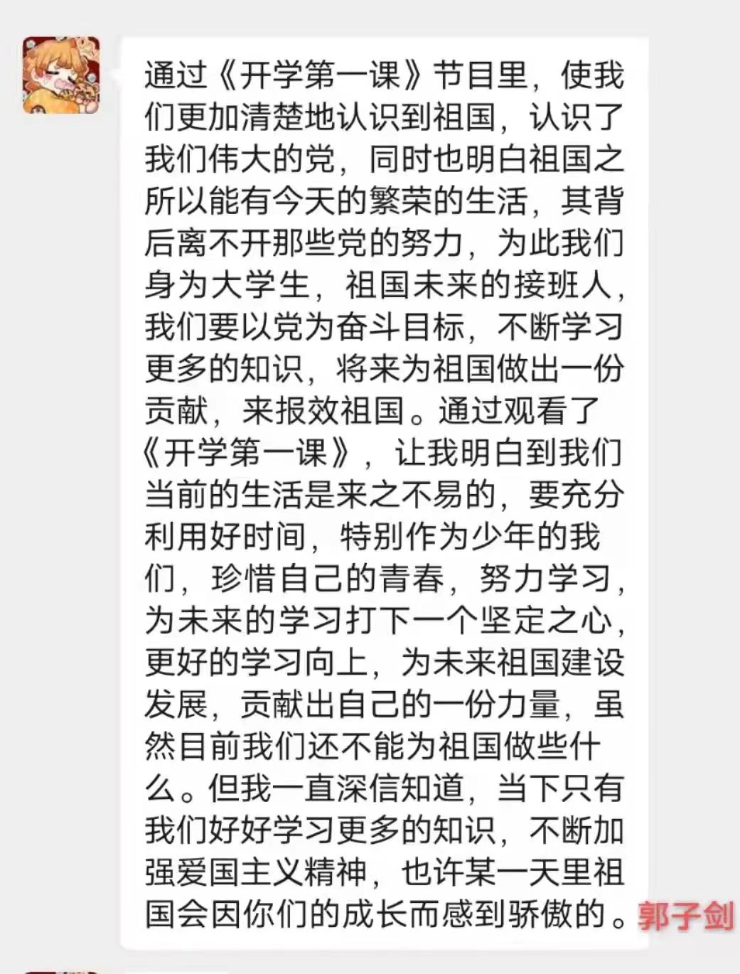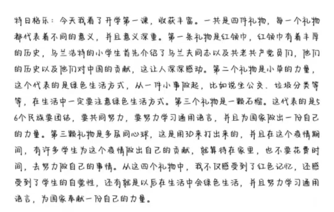 “开学第一课”注重学生引导认真学习、用心感受、深入思考、让党史教育爱国主义教育、民族团结进步教育入脑入心,真正达到启智润心的效果。通过本次观看,希望同学们能够深刻认识“牢记嘱托,筑梦北疆”的内涵与实质,肩负起属于青年人的责任担当以及历史使命,出色完成学业,锻炼自身本领,不断提高内核,努力成为新时代的有力建设者。