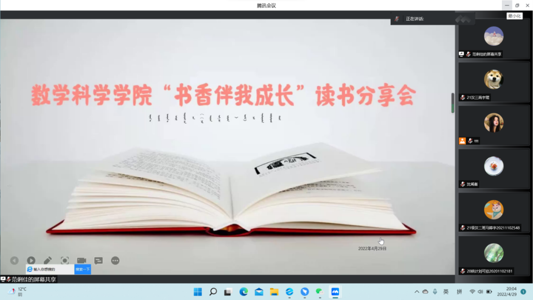 为了铸牢中华民族共同体意识,营造良好的读书氛围,推进书香校园建设,金年会jinnianhuicom于4月29日举办“书香伴我成长”线上读书分享会。本次分享会邀请了五位金年会jinnianhuicom的优秀学子为同学们分享他们的读书经历。