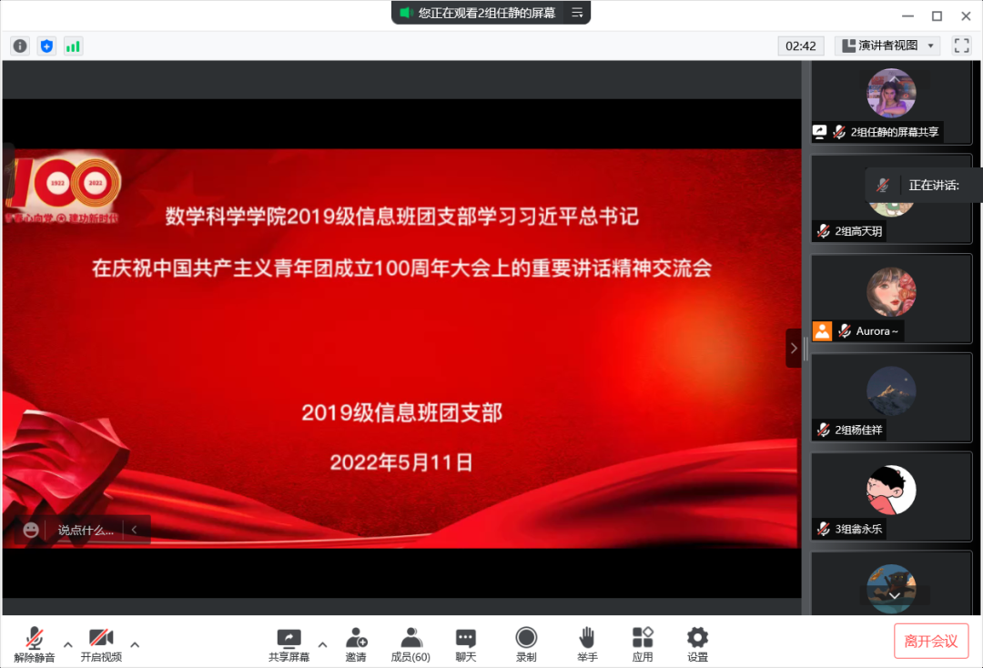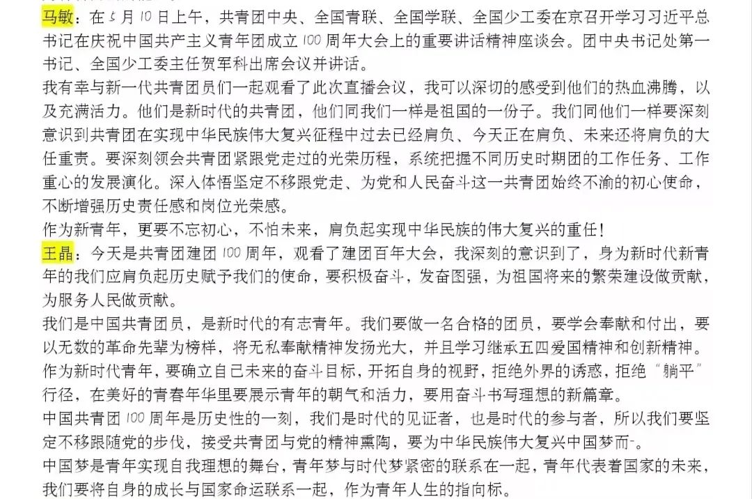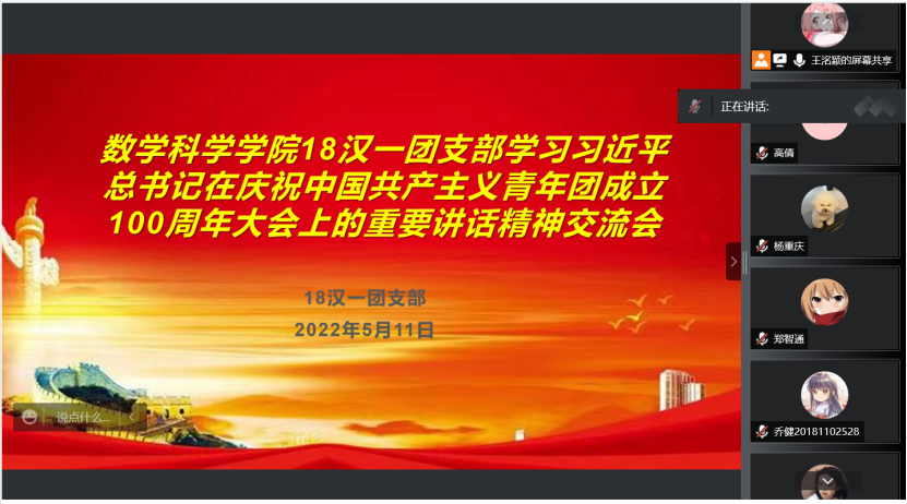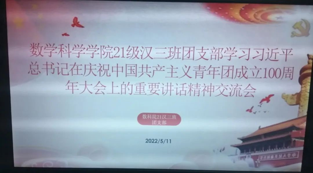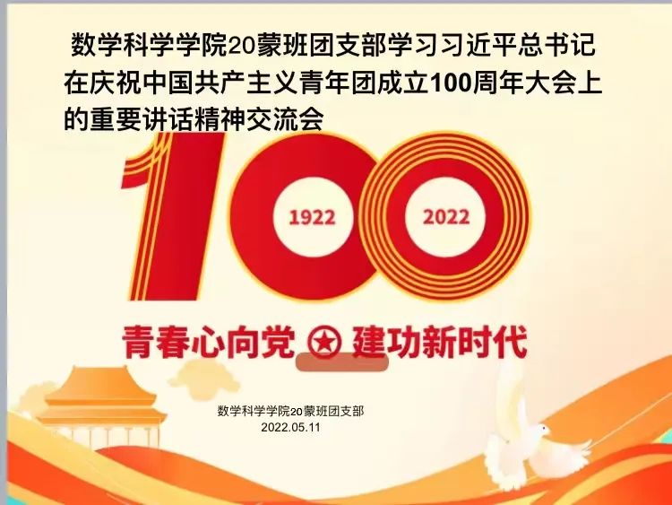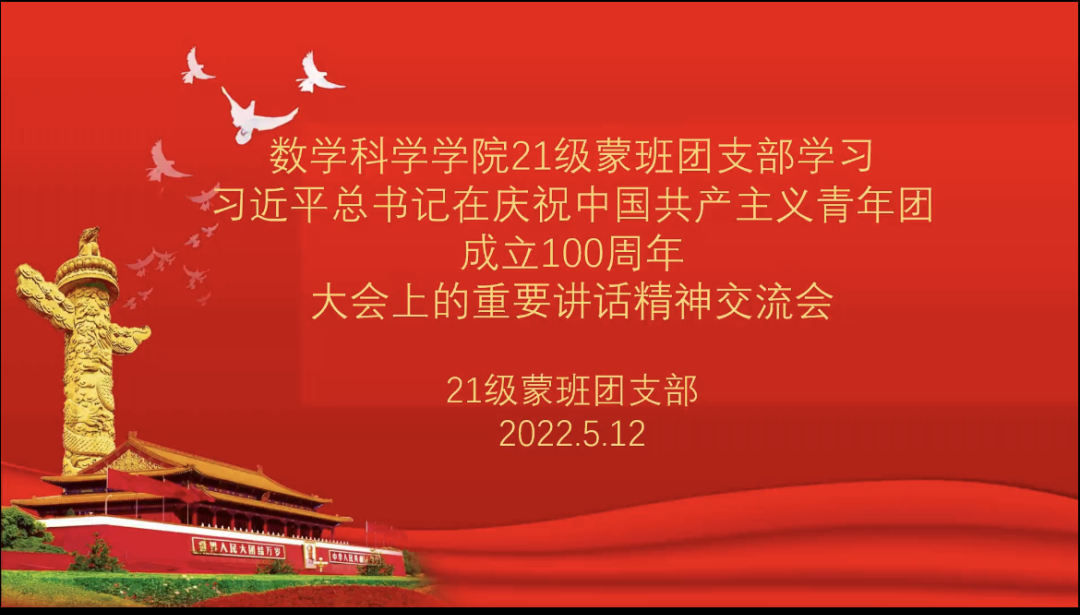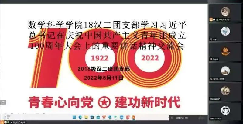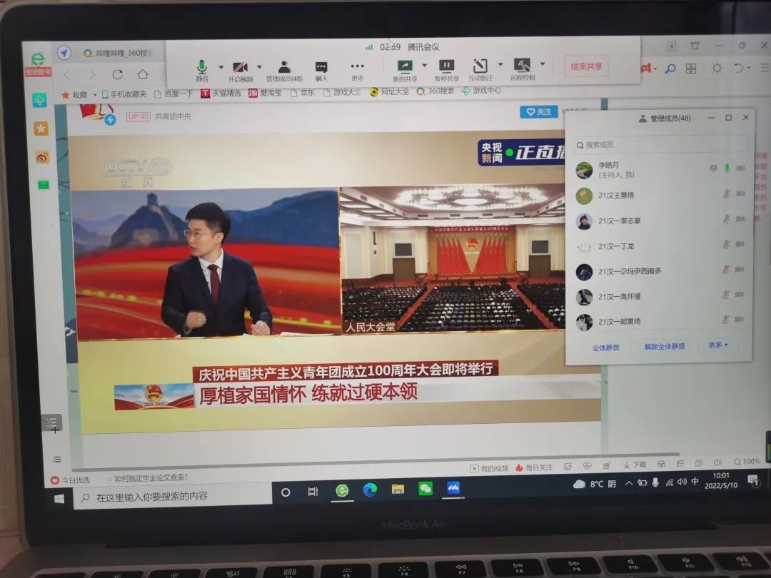 5月10日,庆祝中国共产主义青年团成立 100 周年大会在京隆重举行,习近平总书记发表重要讲话。金年会jinnianhuicom全体团员青年收看了大会盛况,聆听了总书记的重要讲话。会后,各团支部积极行动,组织开展了学习习近平总书记在庆祝中国共产主义青年团成立100周年大会上的重要讲话精神交流会,分享学习心得,感悟党的关怀,以实际行动为团的百年华诞献礼。