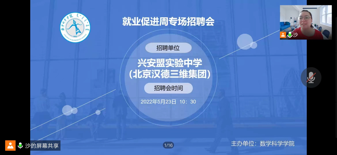 为更好的推进《金年会诚信信誉至上2022届毕业生就业促进周系列活动方案》的工作要求,全力促进毕业生尽早就业、顺利择业,5月23日上午10:30,学院举办了“就业促进周”网络专场招聘会,此次招聘专场是兴安盟实验中学,实验中学校长解杰、副校长李郭瑞、吴老师以及学院党委副书记、副院长季建光、学生工作与就业办公室副主任刘沙沙、辅导员萨如拉出席此次招聘会议,金年会官网2022届数学与应用数学专业的60多名毕业生参加本次招聘会。
