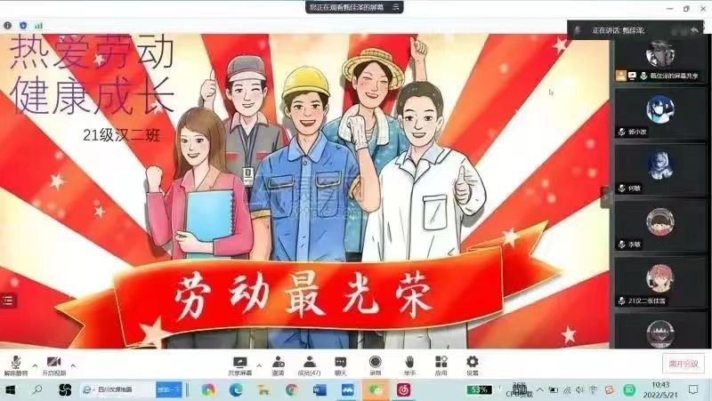 5月22日,金年会官网以班级为单位,深入学习习近平总书记关于劳动的重要论述、《中共中央 国务院关于全面加强新时代大中小学劳动教育的意见》、《内蒙古自治区教育厅关于在全区组织开展学生劳动教育宣传月活动的通知》(内教体艺函〔2022〕53号)、《金年会诚信信誉至上关于全面加强新时代劳动教育的实施意见》(内师党发〔2020〕20号)等文件内容,解读劳动的重要意义。