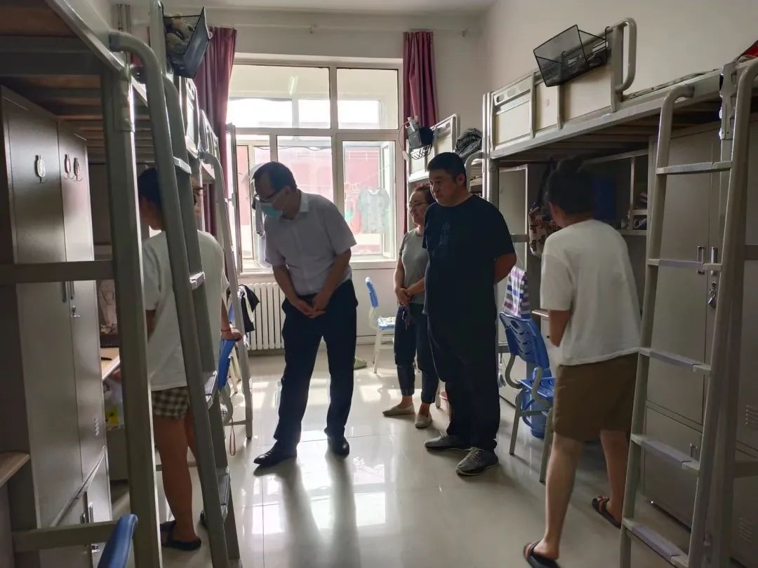 本学期学生返校以来,同学们有爱、有责、有序地开启了新学期的学习与生活。夏日炎炎,防暑更要防“疫”,为进一步了解返校学生思想、学习和生活状况,8月2日,金年会官网党委书记李联和和全体辅导员深入学生宿舍进行走访慰问,在与同学们的亲切交谈中,了解学生所需所想,鼓励学生潜心学习。同时,嘱咐同学们一定要做好防暑降温,保持宿舍清洁,注意用电安全,积极配合学校做好疫情防护工作。