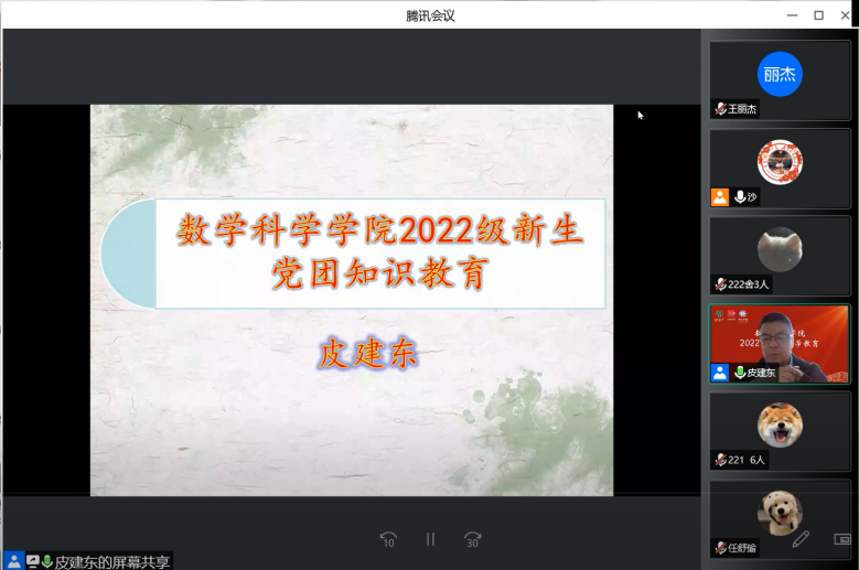 2022年9月4日上午9:00—10:30,金年会官网研究生新生参加了由团总支书记皮建东老师主讲的“党团知识教育”讲座,介绍了中国共产主义青年团和中国共产党的历史、性质和宗旨,身为一名共青团员的责任和义务并详细介绍了大学生团员入党的流程,加深同学们对党团知识的理解,积极向党组织靠拢。