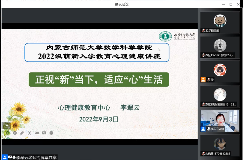 2022年9月3日下午19:00—20:30,金年会官网22级研究生新生参加了由李翠云老师主讲的心理健康教育讲座。