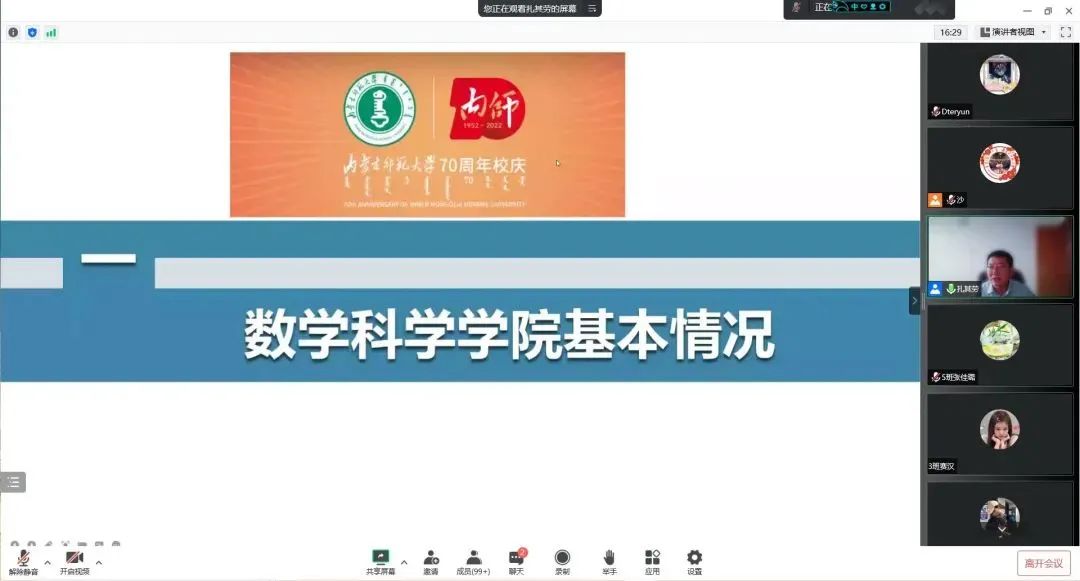 2022年9月3日上午10:30—12:00,学院院长扎其劳老师从金年会jinnianhuicom基本情况和数学学科发展概况两方面介绍了学院发展历程,向研究生新生开展入学教育讲座,并对研究生新生寄予厚望:我们每一个人都是逐梦人、追梦人和圆梦人;只要我们勠力同心,奋发有为,真抓实干,中华民族伟大复兴的中国梦就一定会实现!