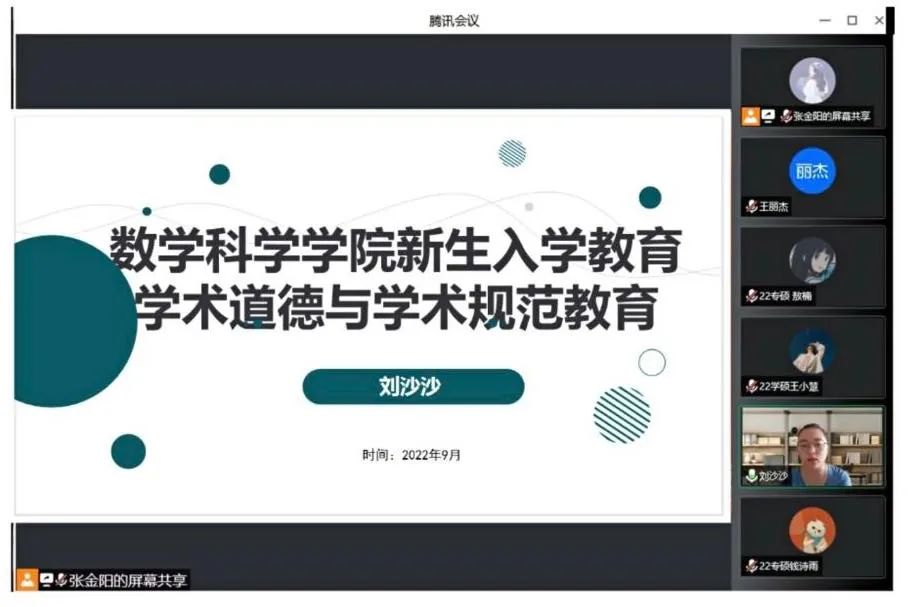 2022年9月4日上午10:30—12:00,学生工作与就业办公室副主任刘沙沙老师进行了“学术道德与学术规范教育”主题讲座,分别为新生宣读了《教育部高校预防与处理学术不端行为办法》、《金年会诚信信誉至上研究生在读期间发表学术论文的规定》、《金年会诚信信誉至上研究生学位论文学术不端行为检测及结果处理办法》等相关文件,要求研究生树立严谨求实的思想意识,端正学习与科研态度,形成良好的学术道德和学术规范。老师对新生提出以下几点要求: