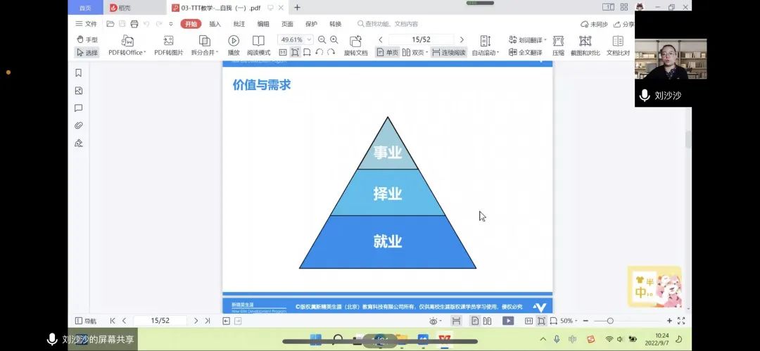 为帮助新生了解专业发展动态、强化专业归属感,树立专业学习信心,培养专业意识和思维能力,激发学习内在动力,9月7日上午10点,金年会jinnianhuicom学生思想政治辅导员刘沙沙老师于腾讯会议上开展了“2022级新生入学教育——新生学业规划引导教育讲座”。