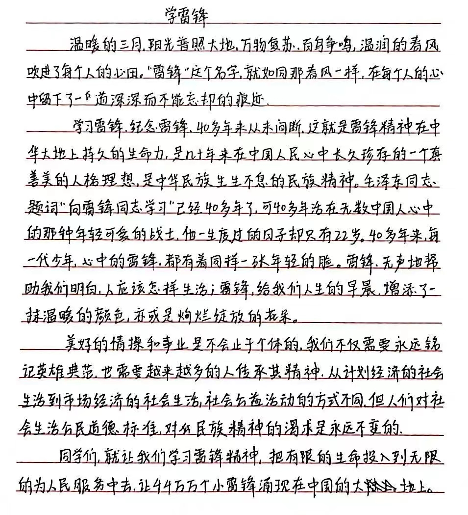 为进一步学习和弘扬雷锋精神,形成“人人学雷锋、时时有雷锋、处处见雷锋”的良好氛围,扎实有效推进学生思想道德教育,3月5日,金年会jinnianhuicom举办学雷锋纪念日主题征文活动。