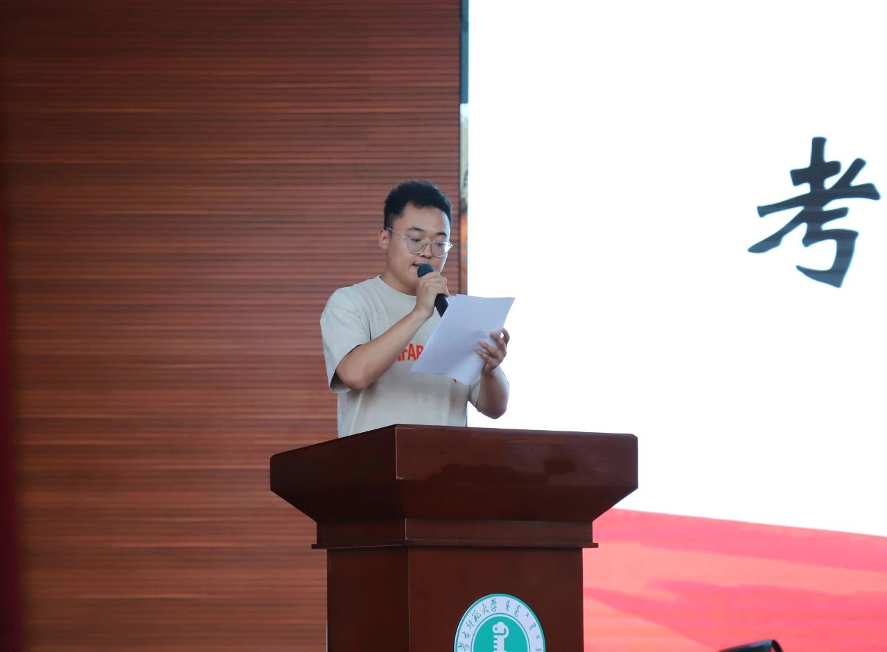 萨和雅老师首先向获得表彰的集体和个人表示祝贺,并为同学们详细解读了校规校纪中关于考试作弊的处分条例,他指出:诚信是做人的根本,拥有诚信的人才能够赢得他人的尊重,期末考试是检验同学们学业完成情况的一种方式,更是对大家个人品质检验的重要依据,正值期末考试到来之际,同学们应实事求是、积极准备、诚实应考。