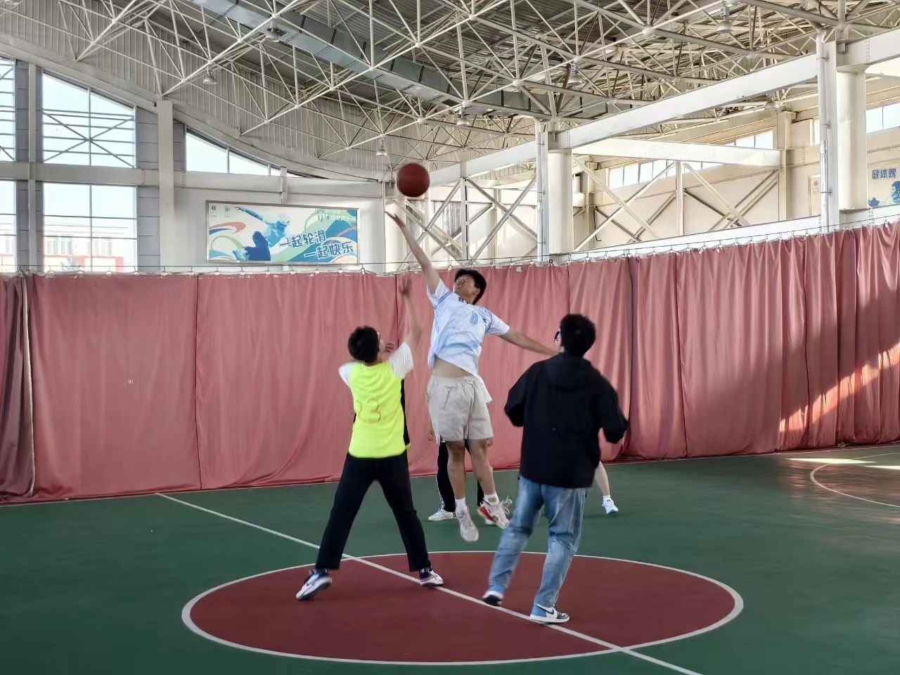 金年会官网24级篮球友谊赛于9月24日上午9点开赛。在裁判清脆的哨声中,被高高抛起的篮球拉开了比赛的帷幕。场上表现精彩纷呈,场下欢呼也此起彼伏。此次比赛展现了金年会官网学子们昂扬向上的精神风貌,增强了集体凝聚力,提升了新生融入感。