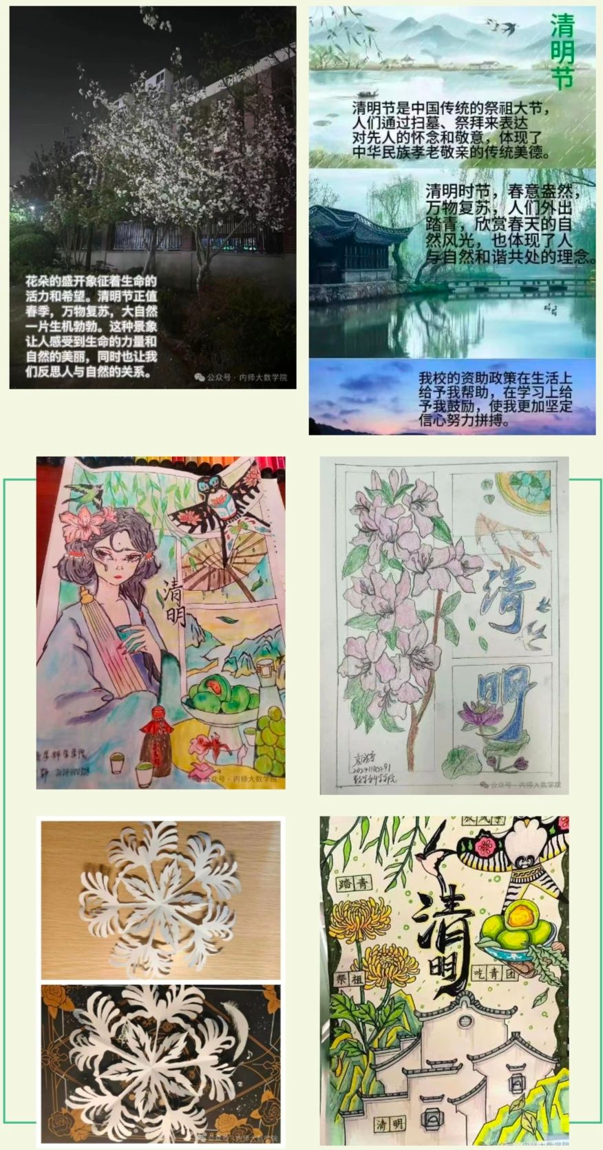 学院还组织开展了“中国节·清明”资助育人融媒体作品征集活动。同学们踊跃参加,一批形式多样、内容新颖的融媒体作品,从受资助学生视角生动展现了清明节深厚的文化底蕴,展现了学校资助育人成效。