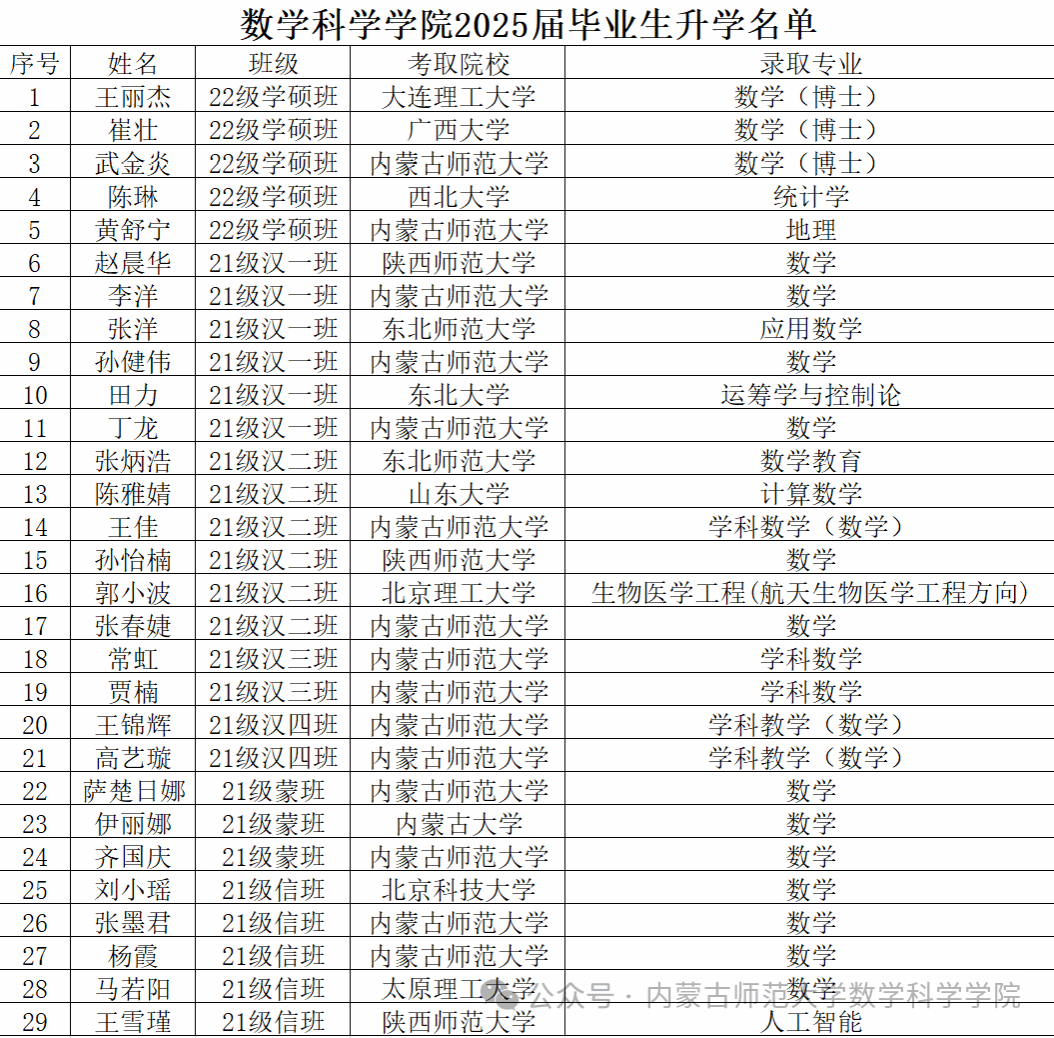 2025年金年会jinnianhuicom考取博士、硕士研究生名单如下(共29名,排名不分先后):
