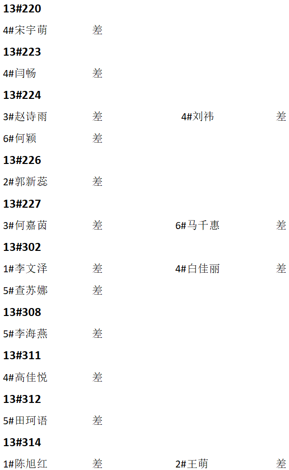 第十二周夜不归宿情况