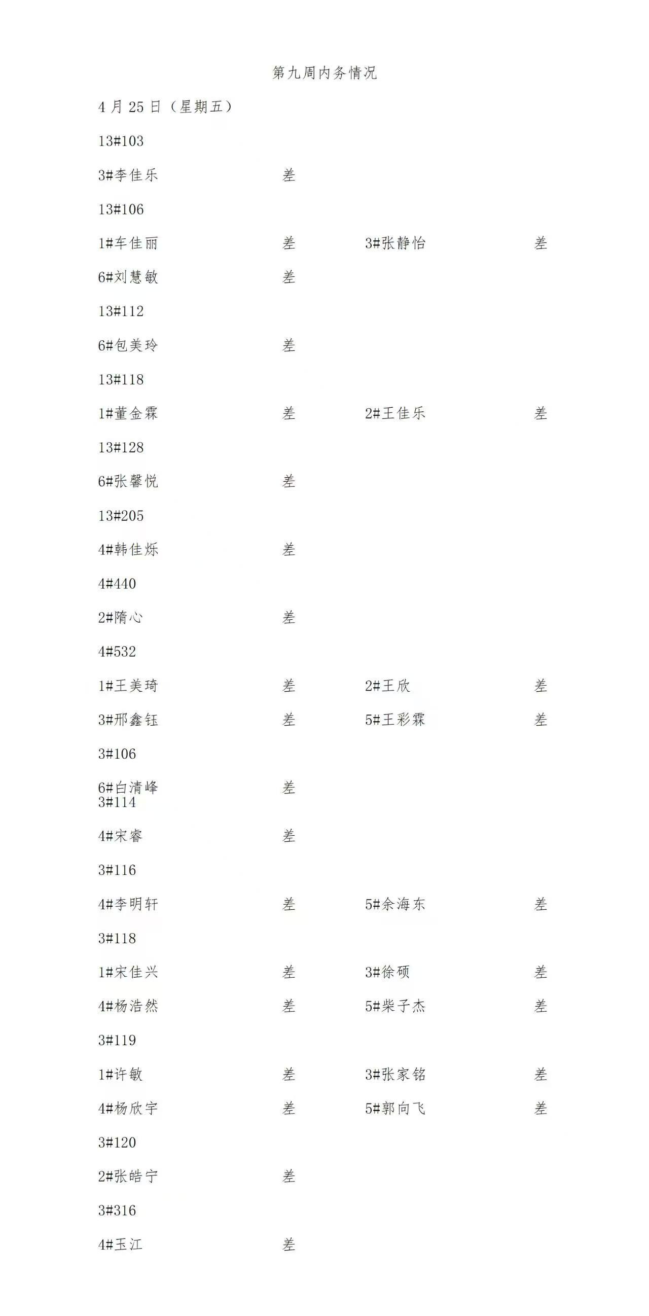 金年会jinnianhuicom2024——2025年度第二学期第九周通报情况