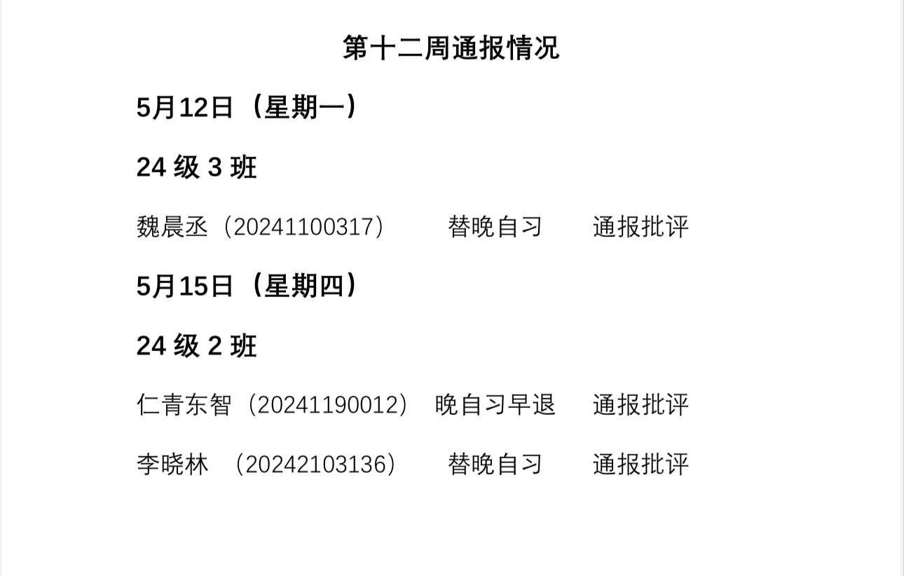 金年会jinnianhuicom2024——2025年度第二学期第十二周通报情况