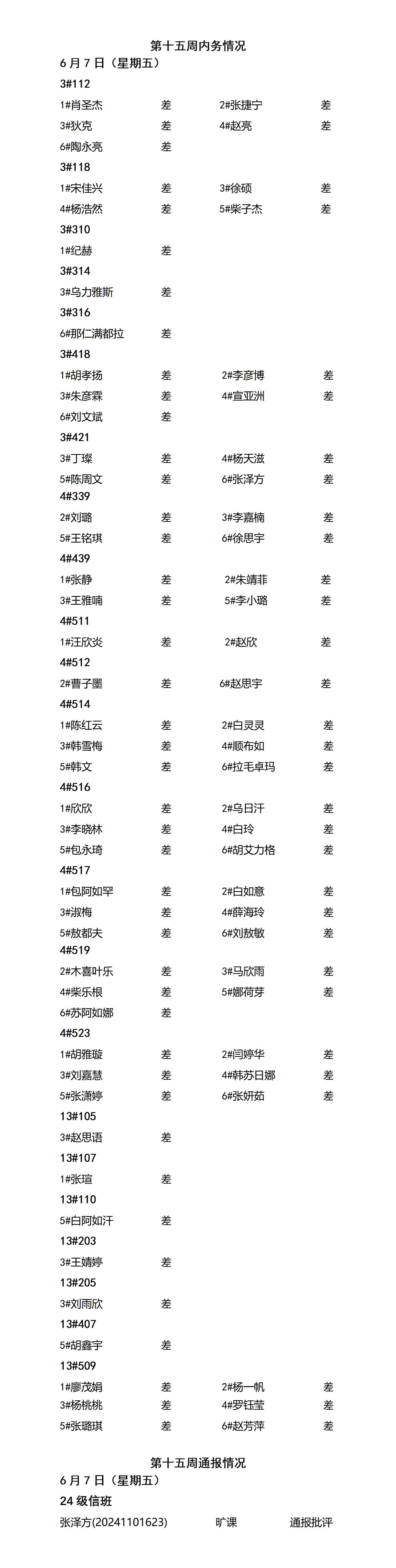 金年会jinnianhuicom2024——2025年度第二学期第十五周通报情况