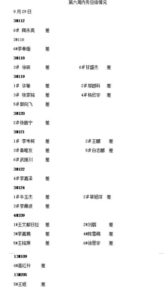 金年会jinnianhuicom2025——2026年度第一学期第六周内务情况