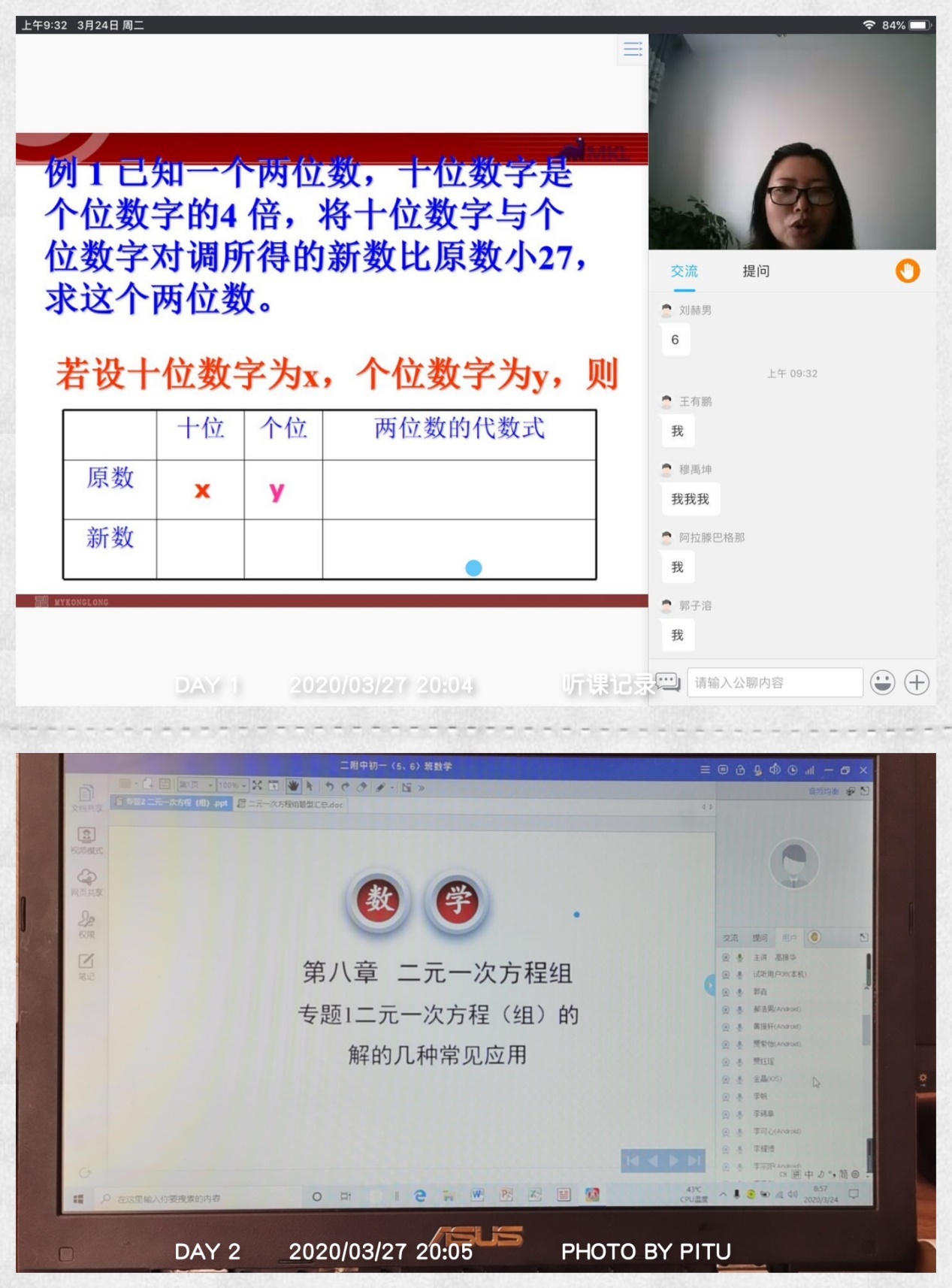 实习场所从学校转移到了家里,不变的是师大二附中老师们在课堂上的谆谆教诲。在初二数学组的苏老师的课堂上,他丰富的专业知识,娴熟的教学技巧,浑然天成的教学风格都让我收获颇丰,启发良多。一边听课一边思考,作为实习生,我认真思考实际的课堂上应该怎样教好学。