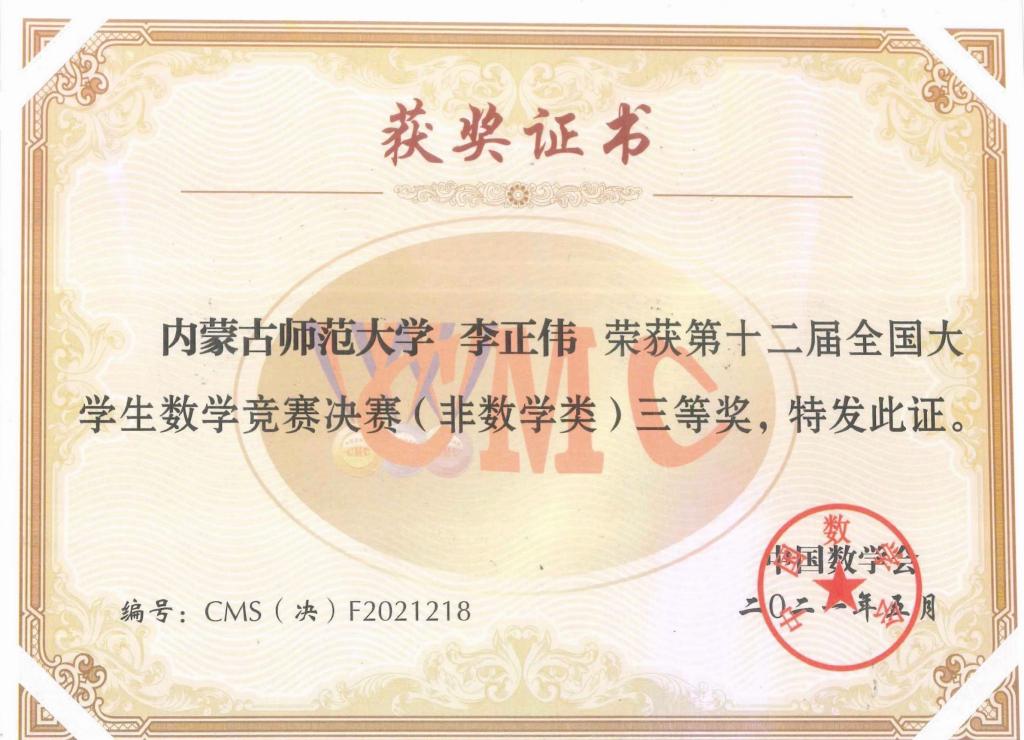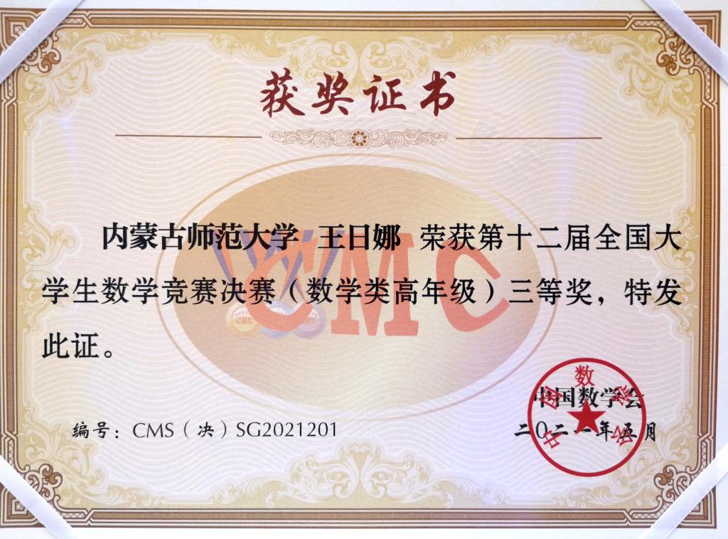 2021年5月14-16日,第十二届全国大学生数学竞赛决赛在吉林大学成功举办。我校学子首次入围全国总决赛,取得了可喜的成绩。经过激励角逐,由金年会jinnianhuicom耿俊老师指导的2018级王日娜同学获得了数学类高年级组全国三等奖、经济管理学院2019级李正伟同学获得了非数学类全国三等奖,实现了我校在该项赛事国奖零的突破。