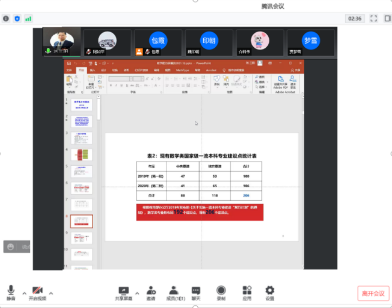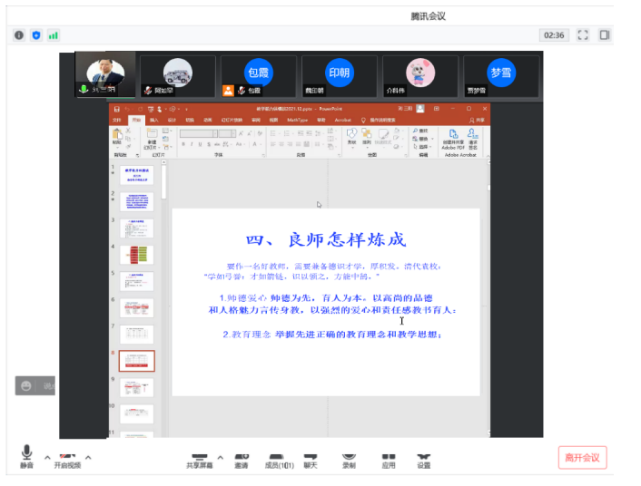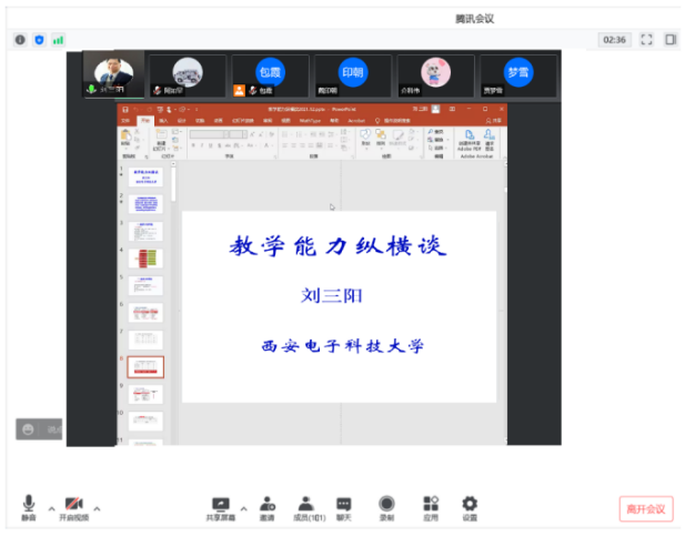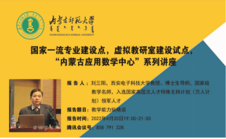 2022年4月20日19:00—21:00金年会jinnianhuicom在线开展“国家一流专业建设、虚拟教研室建设、内蒙古应用数学中心”系列讲座。本次特邀请国家教学名师、西安电子科技大学刘三阳教授作主题为“教学能力纵横谈”的报告。报告由包霞副院长主持,院长扎其劳教授、党委书记李联和教授、副书记季建光老师及学院全体教师和慕名而来的其他院校部分教师聆听了本次报告。