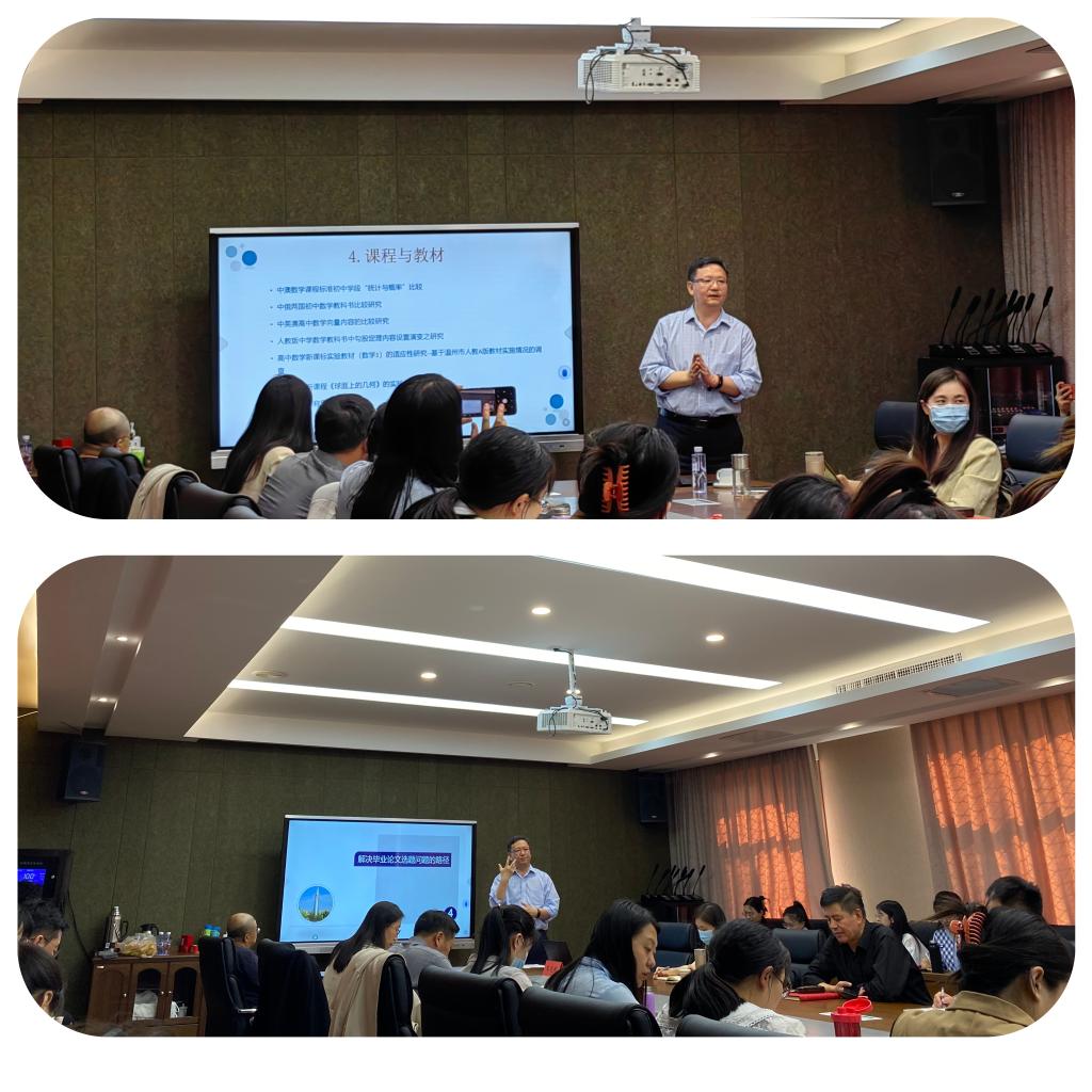 报告过程中,王光明教授与参会师生互动,借助全国教育硕士学科教学(数学)专业的优秀学位论文,不断引导师生聚焦专业选题、开展研究的思路与方法,使大家受益匪浅。