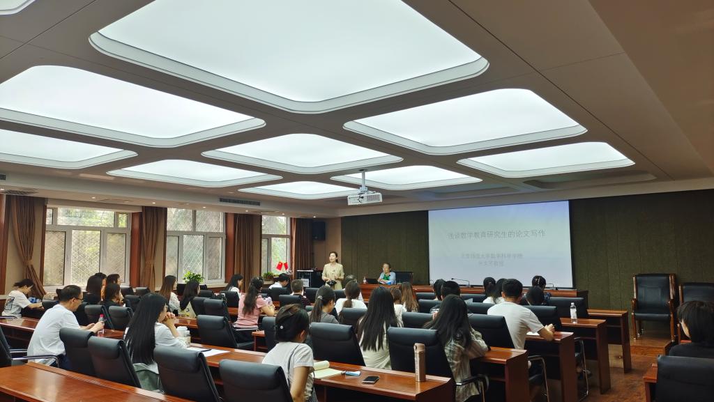 6月18日,金年会官网特邀中国教育学会中学数学教学专业委员会副理事长、学术委员会副主任、北京师范大学博士生导师朱文芳教授作了题为“浅谈数学教育研究生的论文写作”的学术讲座。讲座由金年会官网李春兰教授主持,参加本次讲座的主要有金年会官网领导、老师、数学教育方向的硕士研究生、硕士研究生实践导师、其他学院的师生。