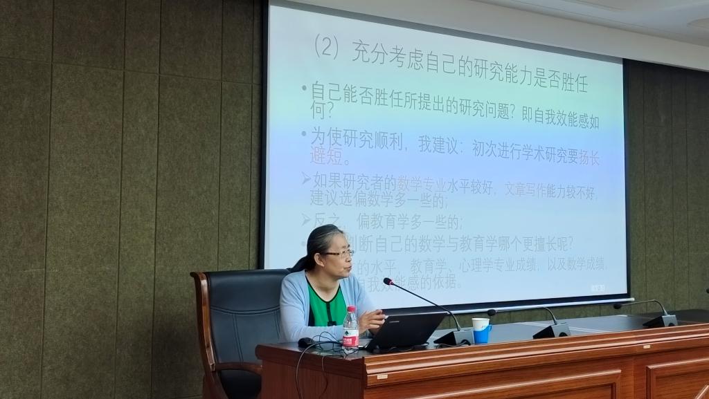 朱文芳教授用风趣幽默的语言,结合具体实例,从数学教育研究生选题原则、以往研究生论文写作中存在的问题、ChatGPT/AIGC对未来数学教育研究的影响、未来数学教育研究要关注的问题等方面进行了详细地讲解,并耐心回答了学生们提出的问题,使大家受益匪浅。