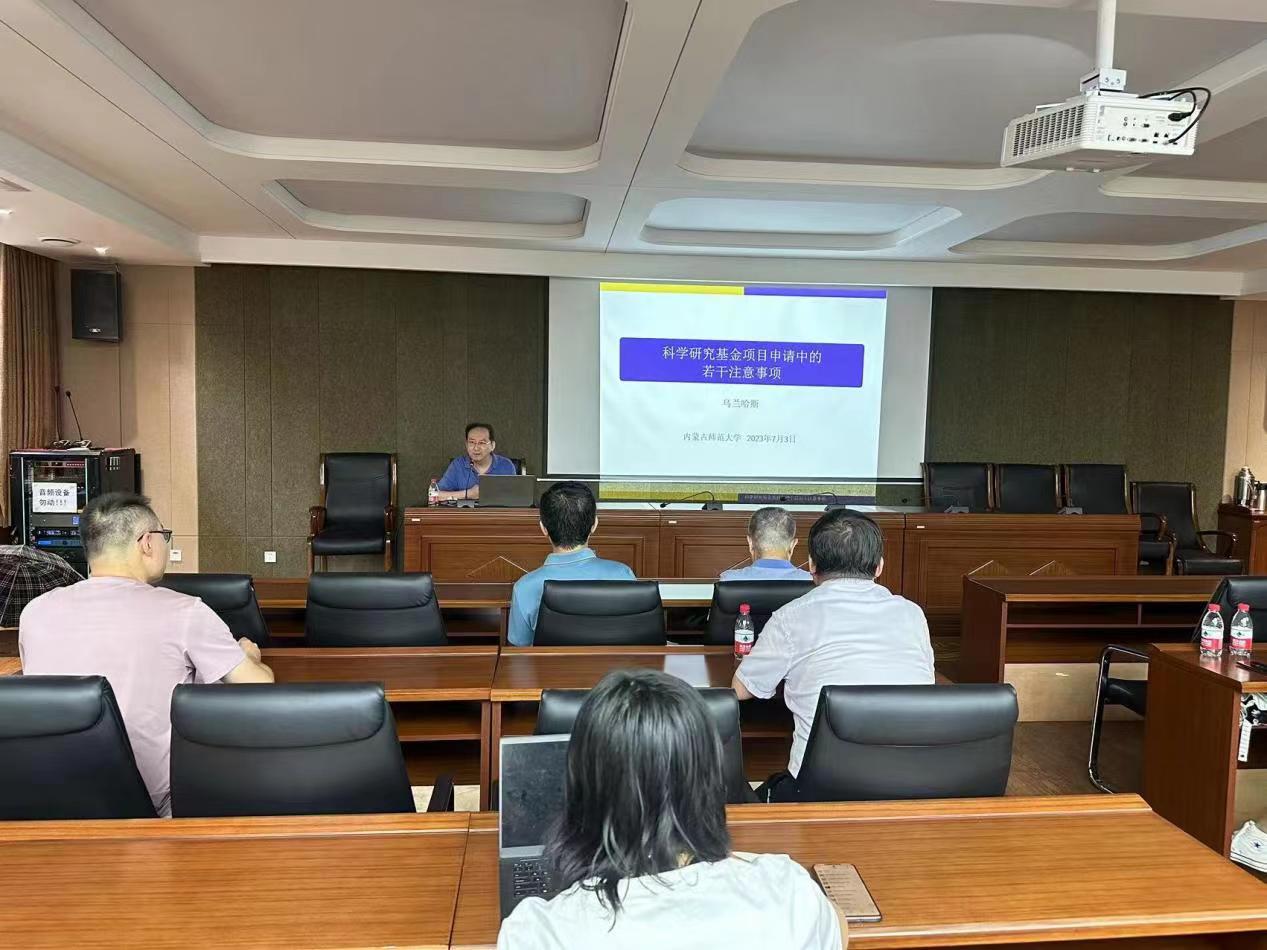 7月3日下午,应金年会jinnianhuicom邀请汕头大学教授、金年会诚信信誉至上特聘教授乌兰哈斯先生作题目为“科学研究基金项目申请中的若干注意事项”的学术讲座。出席本次讲座的有刘官厅教授、扎其劳院长、包霞副院长以及金年会官网部分教师。