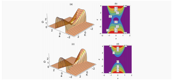 成果2:Breathers and higher order rogue waves on the double-periodic background for the nonlocal Gerdjikov–Ivanov equation,Nonlinear Dynamics(中科院二区期刊)。该研究利用达布变换方法,获得了非局域Gerdjikov–Ivanov在单周期波、双周期波背景上的呼吸波和怪波解。