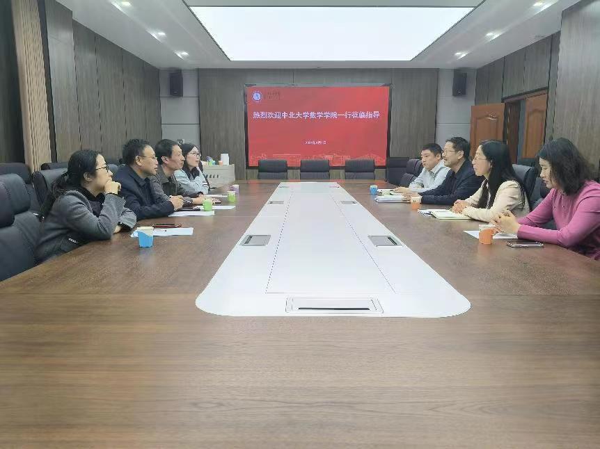 4月1日下午,中北大学数学学院党委书记薛亚奎等一行四人来金年会官网开展调研交流,学院院长扎其劳与部分教师代表参加调研。薛亚奎一行在包霞副院长的讲解下参观了内蒙古自治区应用数学中心和教育部重点实验室(培育),详细了解金年会官网在科学研究、平台建设等方面的做法及成效。